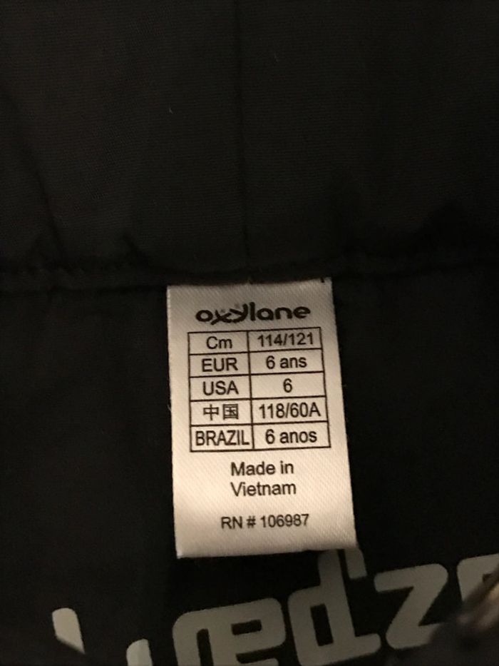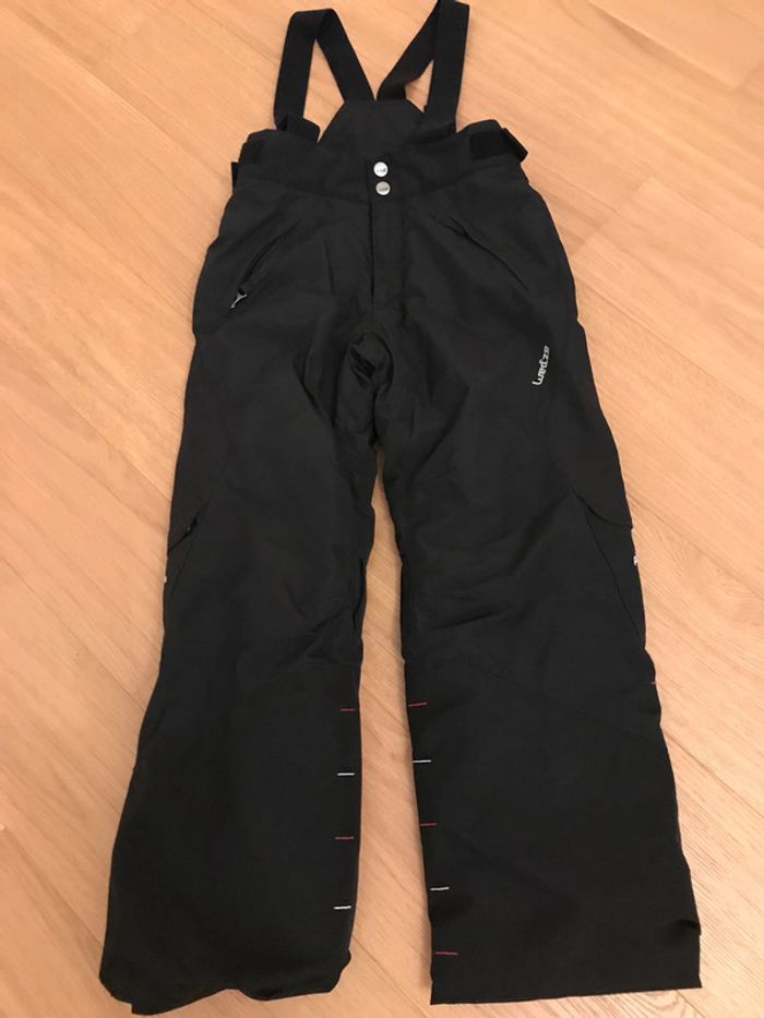 Pantalon chaud Haut doublé d’un jersey polaire Bretelles amovibles Taille réglable Jupe pare neige intégrée dans la jambe, ajustable par pression (voir photo) 2 poches avant + poches sur la jambe droite + mini poche du côté gauche (voir photos) Taille : 6 Ans Très bon état Marque : OXYLANE
