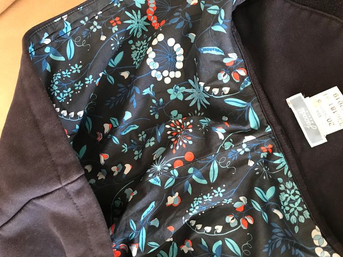 Molleton doux et chaud Ouverture zippée Poches sur les côtés Capuche doublée avec tissu fleuri Composition : 69% polyester, 28% coton et 3% élasthanne Bon état Âge : 10 Ans Marque : JACADI