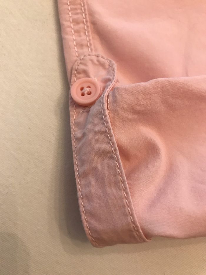 Joli petit pantalon long avec possibilité de raccourcir les jambes grace à un bouton sur le côté pour en faire un bermuda Poches plaquées froncées avec petit nœud sur le devant Deus poches aussi au dos Ceinture élastiquée avec passants Composition : 100 % coton Très bon état Taille : 4 Ans Marque : OKAOU