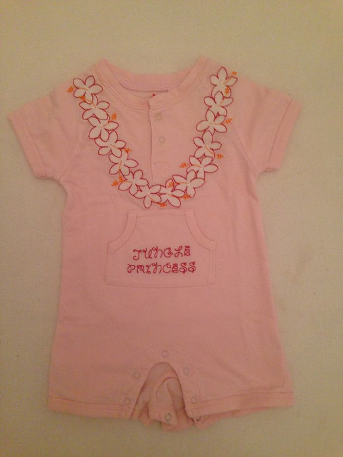 Combinaison courte unie rose avec motif en couronne de fleurs brodées Ouverture avec pressions sur une partie du devant et à l'entrejambe Poche centrale avec ouverture arrondie de chaque côté Matière: 100 % Coton Jersey un peu épais