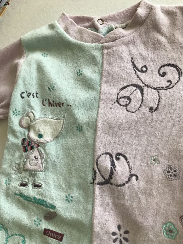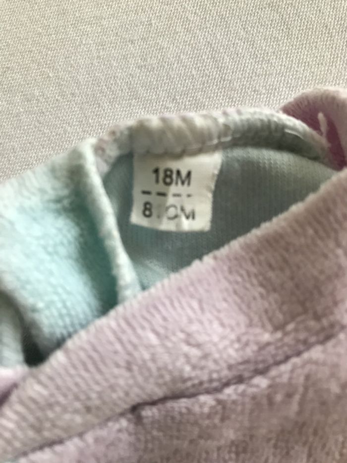 Pyjama en éponge velours qui convient aussi bien à une fille qu’à un garçon Composition : 100 % coton Ouverture pressionnée dans le dos Article porté mais encore en bon état, ni accroc ni tâche Taille : 18 Mois #Enfantsdavicl
