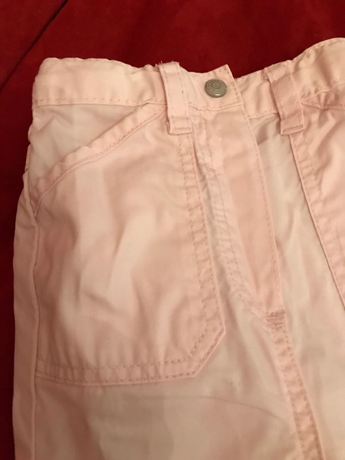 Taille élastiquée au dos et réglable sur le devant (voir photo) Poches sur chaque côté devant et deux poches plaquées au dos avec broderie Ouverture devant fermée par bouton pression Etat satisfaisant (petite tâche à l’intérieur au niveau de l’élastique) #Enfantsdavicl
