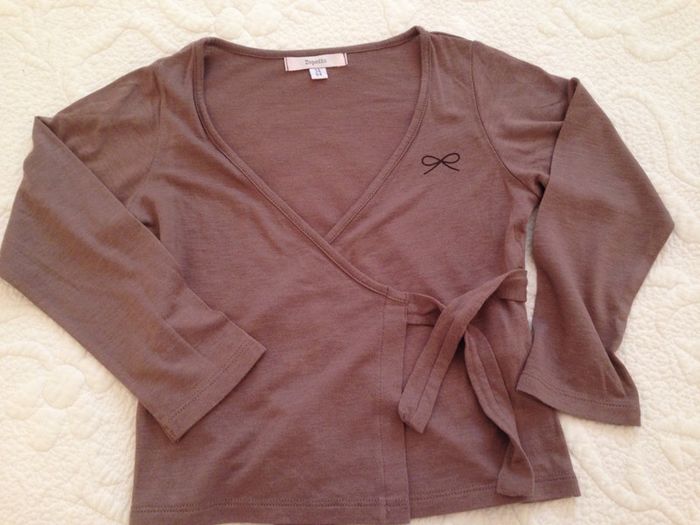 Gilet très léger, fin et doux Impression d’un nœud marron sur le devant gauche Composition : 60 % Viscose, 20 % Polyester et 20 % Laine Bon état, ni tâche ni accroc Marque : REPETTO #3ansdavicl