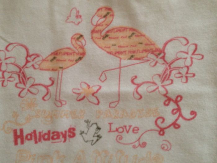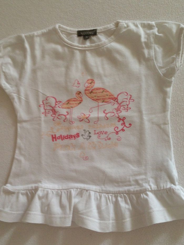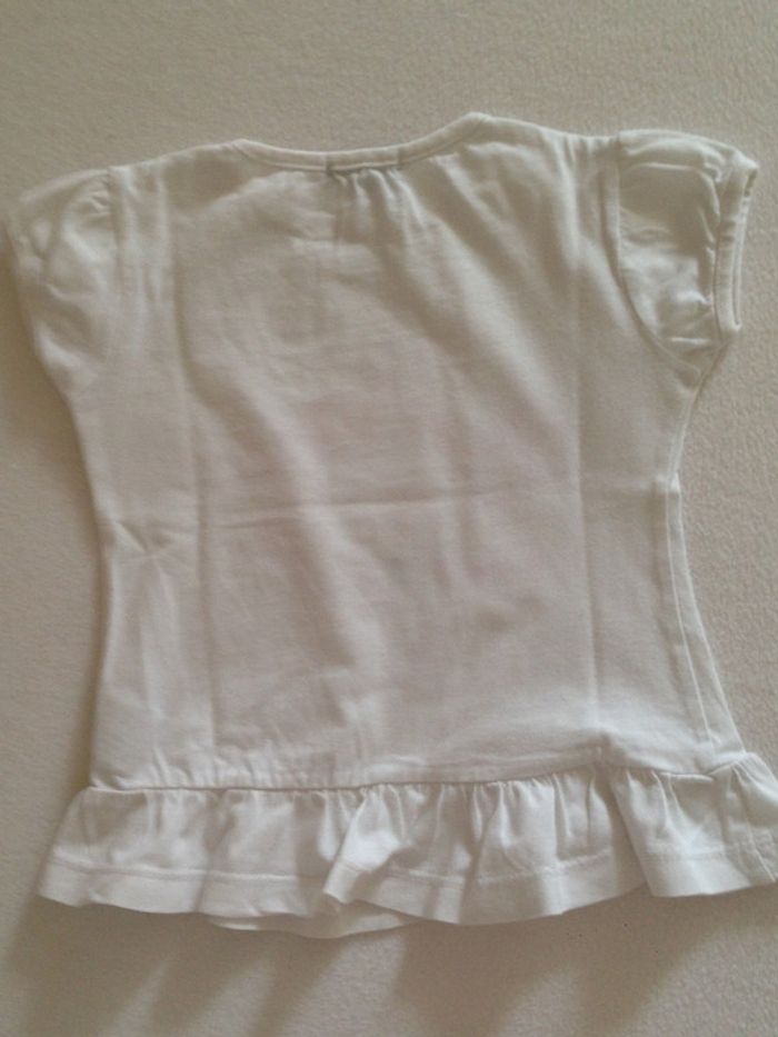 Tee-shirt petites manches froncées Encolure ronde Bas volanté ce qui lui donne un peu de longueur : 33 cm Incrustation sur le devant (voir photo) Bon état #3ansdavicl