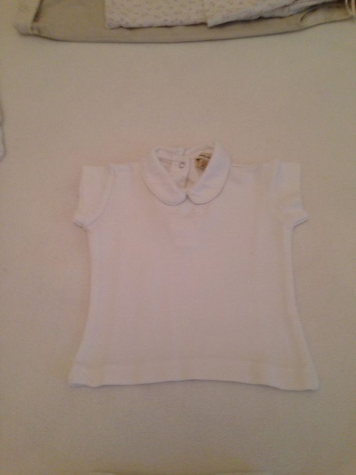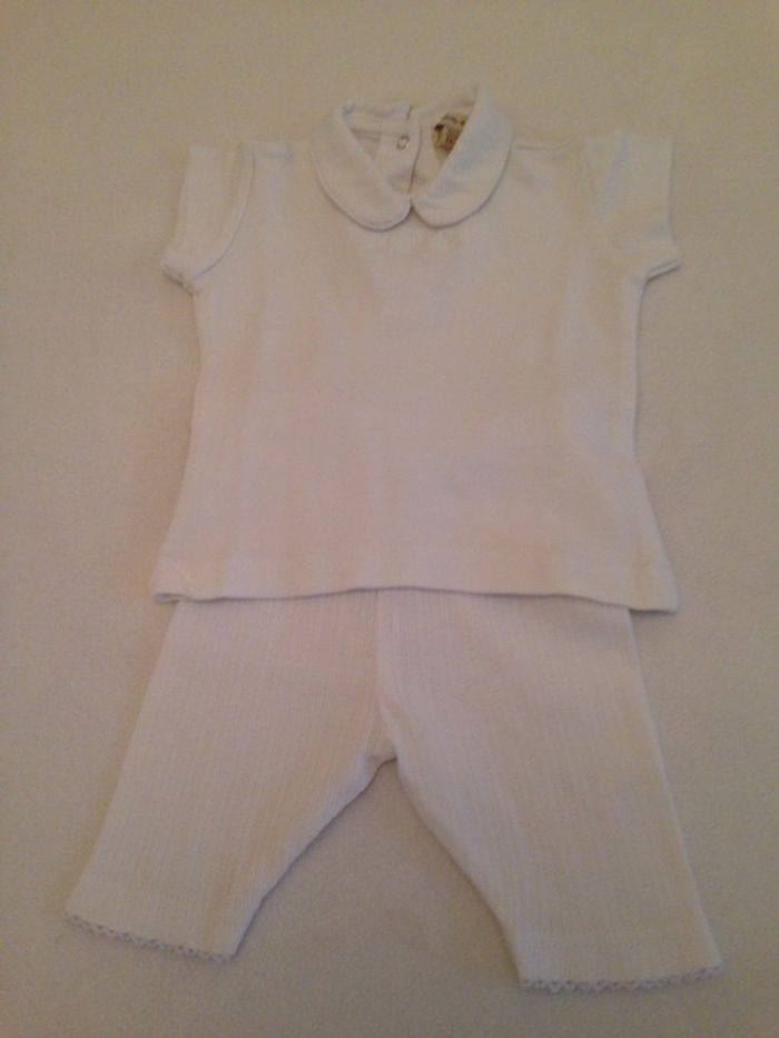 Cet ensemble se compose d'un petit polo à col claudine avec petite broderie sous le col t d'un legging court terminé par un petit picot au bas des jambes Composition : 100% coton Tee-shirt : marque Grain de Blé Legging ; sans marque