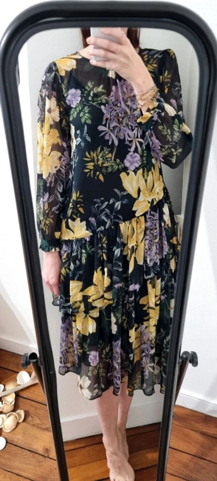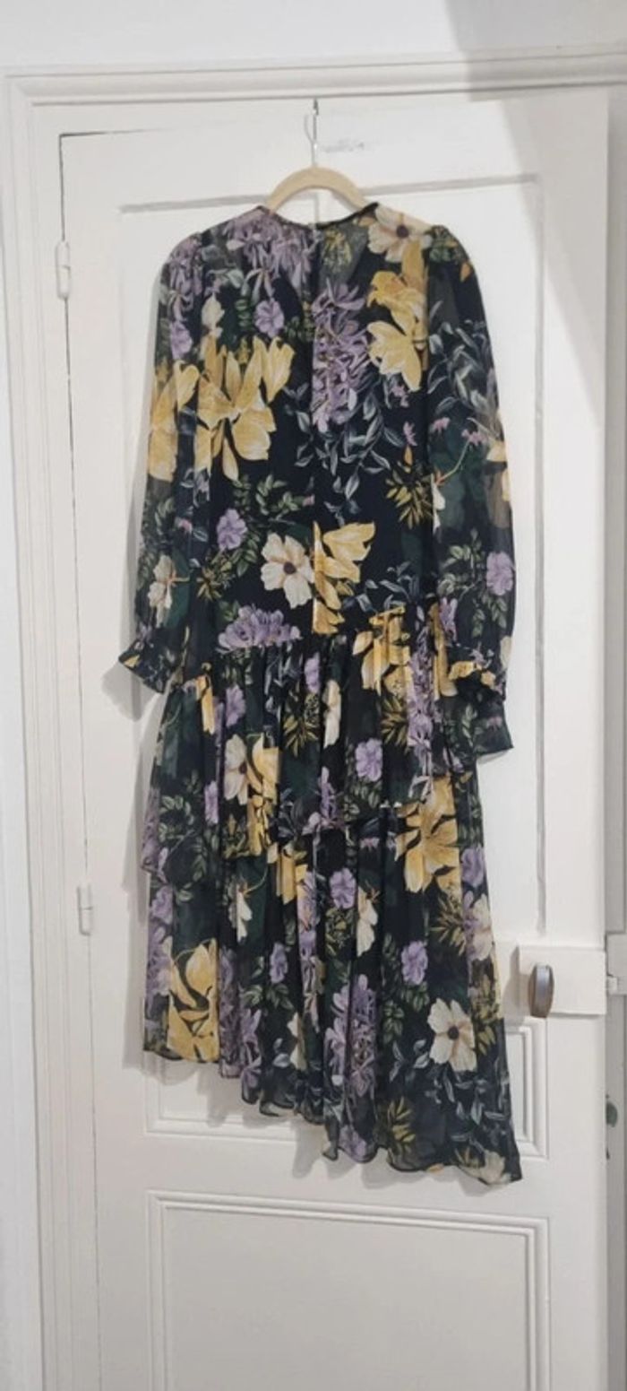 Robe longue imprimée fleurie violet noir jaune mango M - photo numéro 10