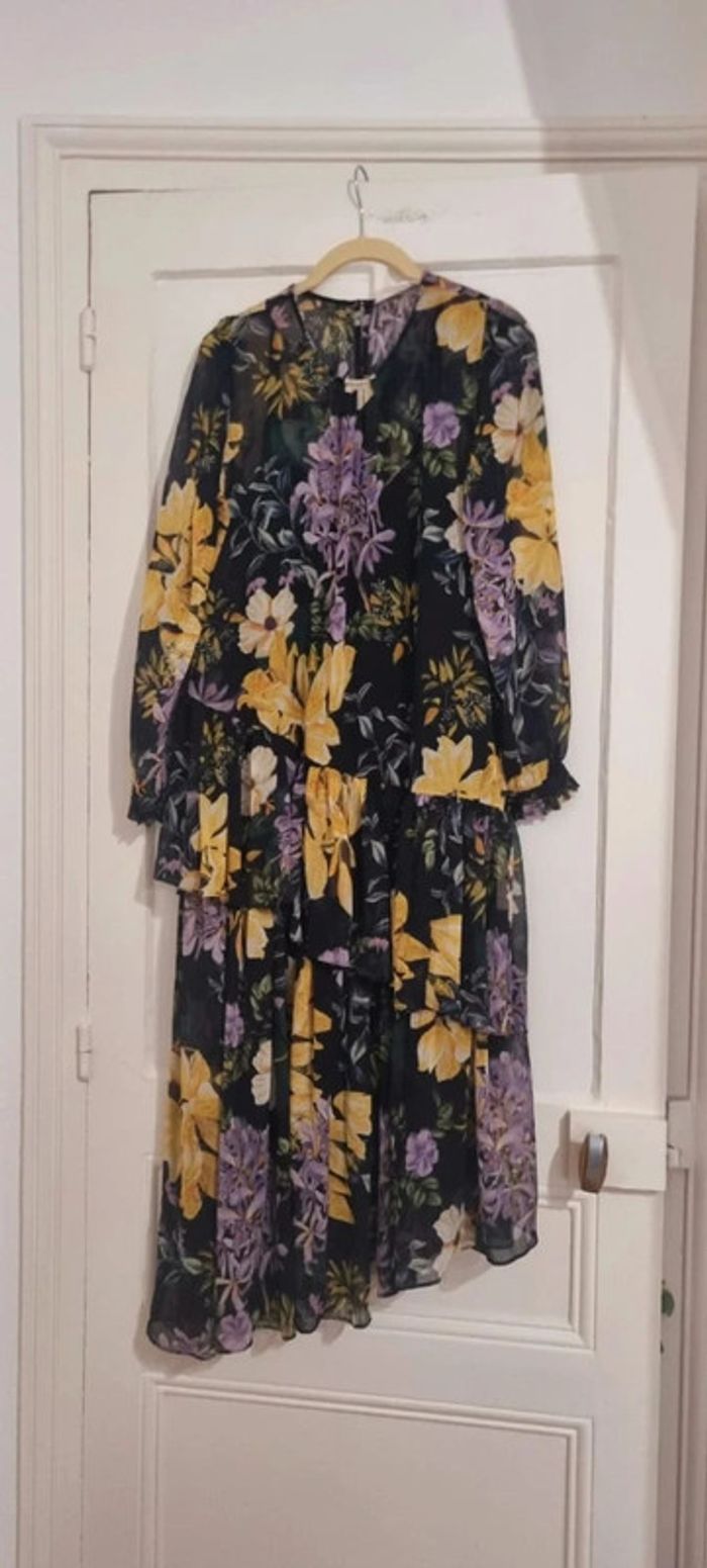 Robe longue imprimée fleurie violet noir jaune mango M - photo numéro 1