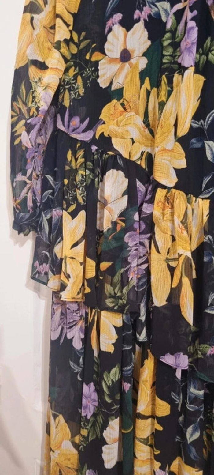 Robe longue imprimée fleurie violet noir jaune mango M - photo numéro 6