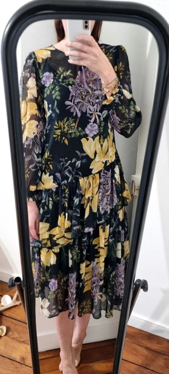 Robe longue imprimée fleurie violet noir jaune mango M - photo numéro 4