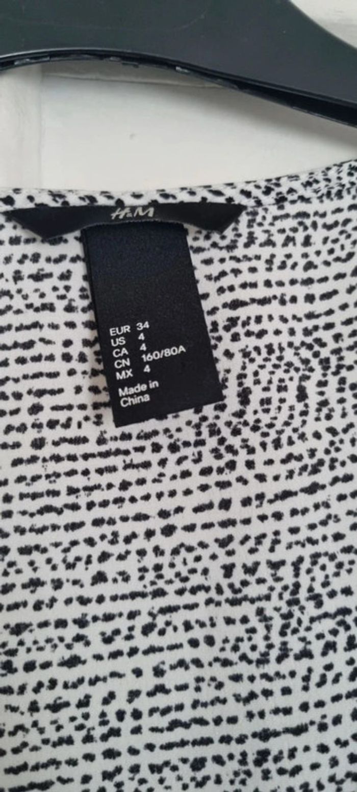 Robe courte h&m 34 imprimée moucheté noire et blanche neuve manche courte - photo numéro 4