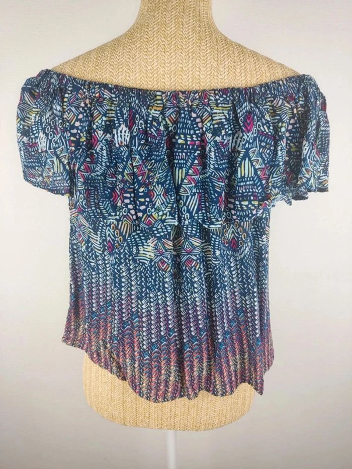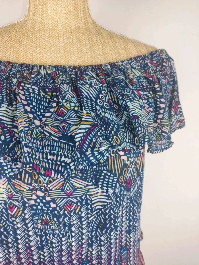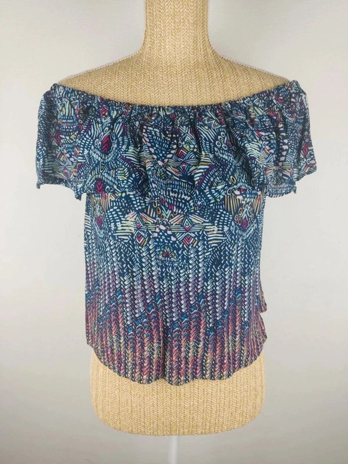 Top / blouse épaules dénudées col à volants motifs graphiques multicolores taille L Oysho - photo numéro 1