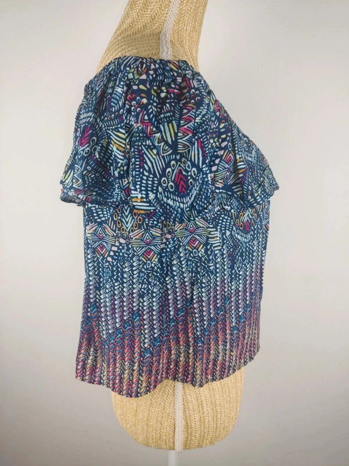 Top / blouse épaules dénudées col à volants motifs graphiques multicolores taille L Oysho - photo numéro 7