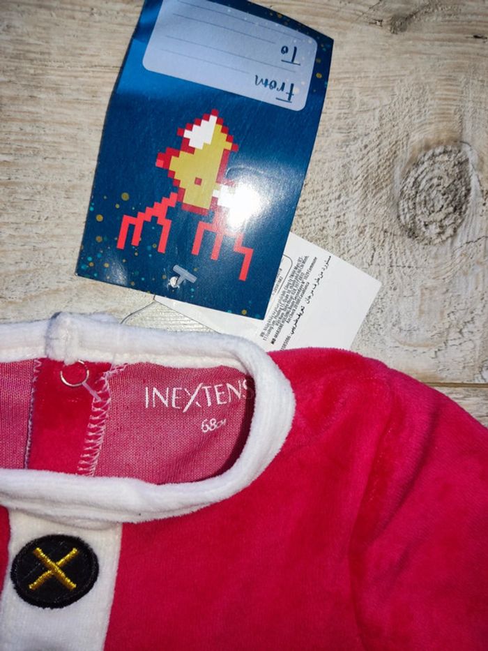 Pyjama de Noël velours rouge avec ceinture noire 6 mois In Extenso neuf - photo numéro 3