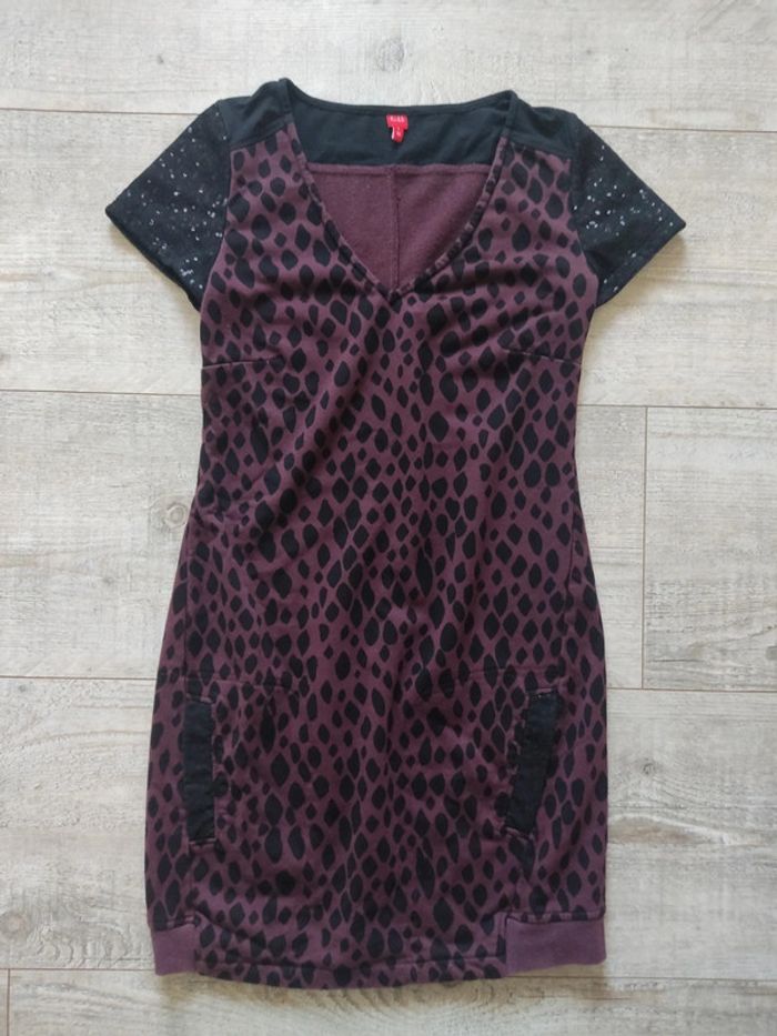 Robe manches courtes avec poches noire bordeaux strass taille 36 Miss Captain - photo numéro 1