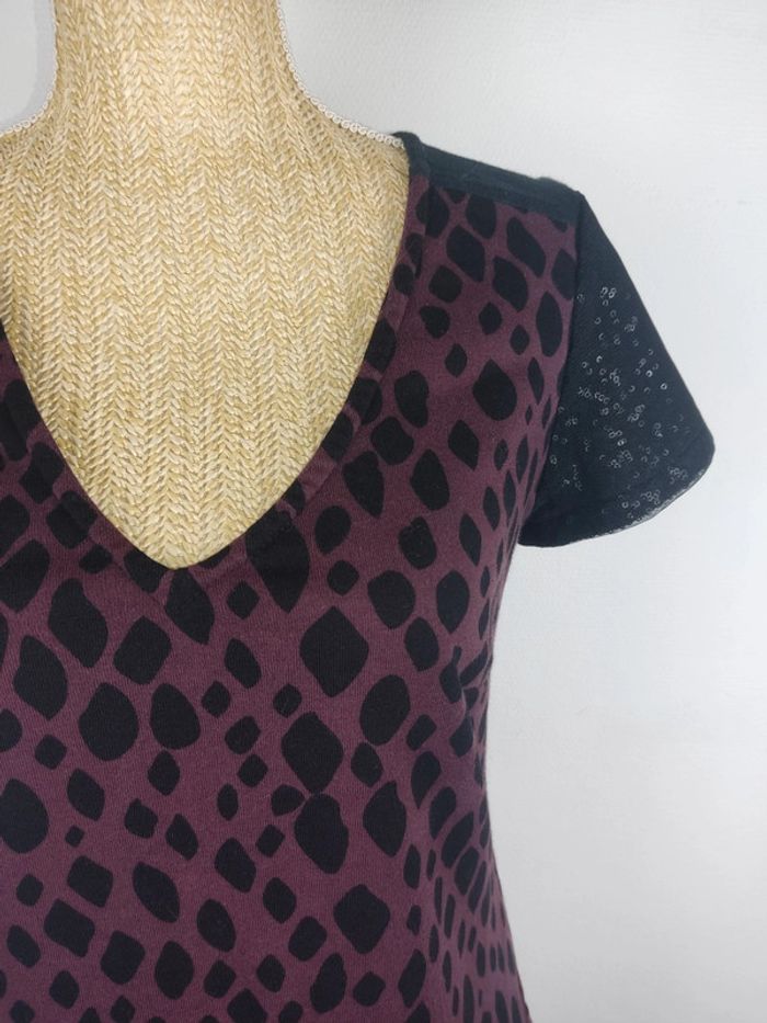 Robe manches courtes avec poches noire bordeaux strass taille 36 Miss Captain - photo numéro 6