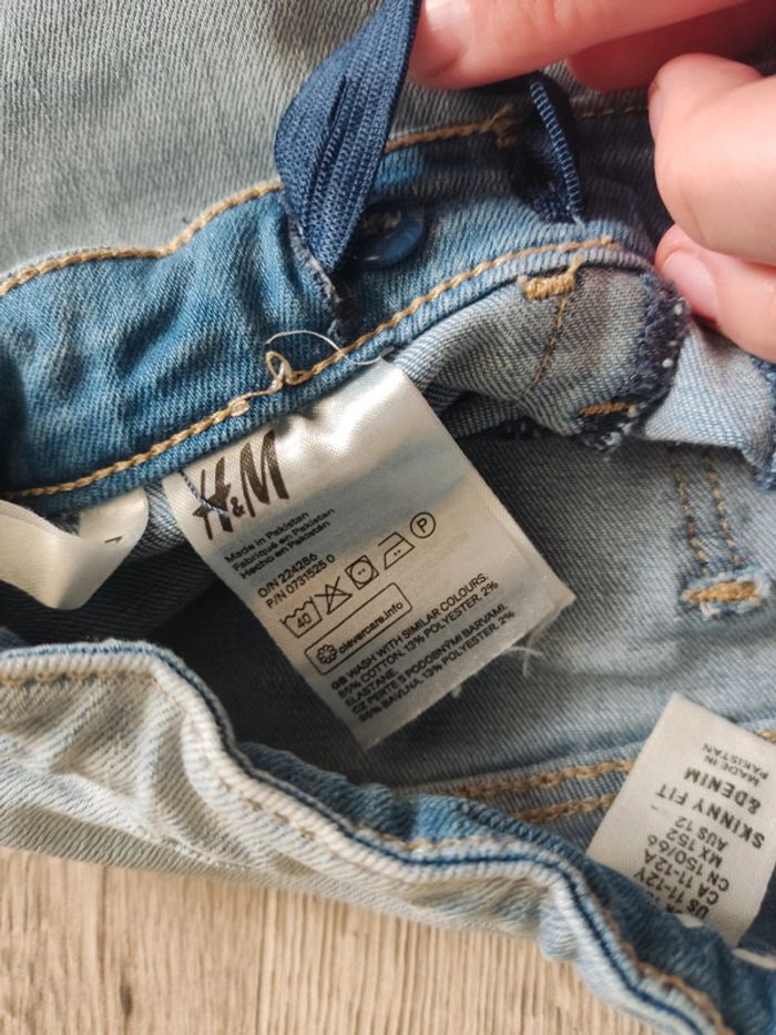 🌷 Pour toute demande de lots, n'hésitez pas à me contacter🌷 Jeans skinny super stretch, poches avant et arrière, détails used, taille réglable avec élastique et boutons, couleur bleu clair, coton / polyester / elastane, de la marque H&M. Taille : 11/12 ans - 152 cm Etat : très bon état Pour découvrir toutes les pièces garçon taille 11 ou 12 ans disponibles sur le shop, cliquez ci-dessous ⤵️ #greenfripgarcon11ans #greenfripgarcon12ans #jeans #jeansskinny #hm