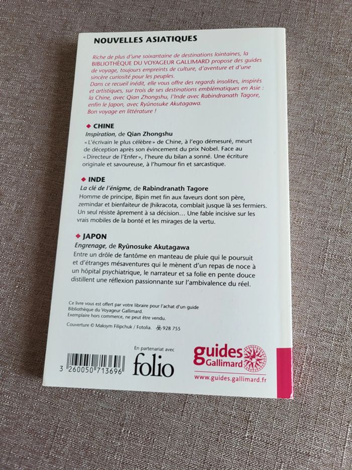 Nouvelles asiatiques Qian Zhongshu, Rabindranath Tagore & Ryûnosuke Akutagawa Editions folio Bibilothèque du voyageur gallimard #SILVERSYNlivres #SILVLivresAdultes
