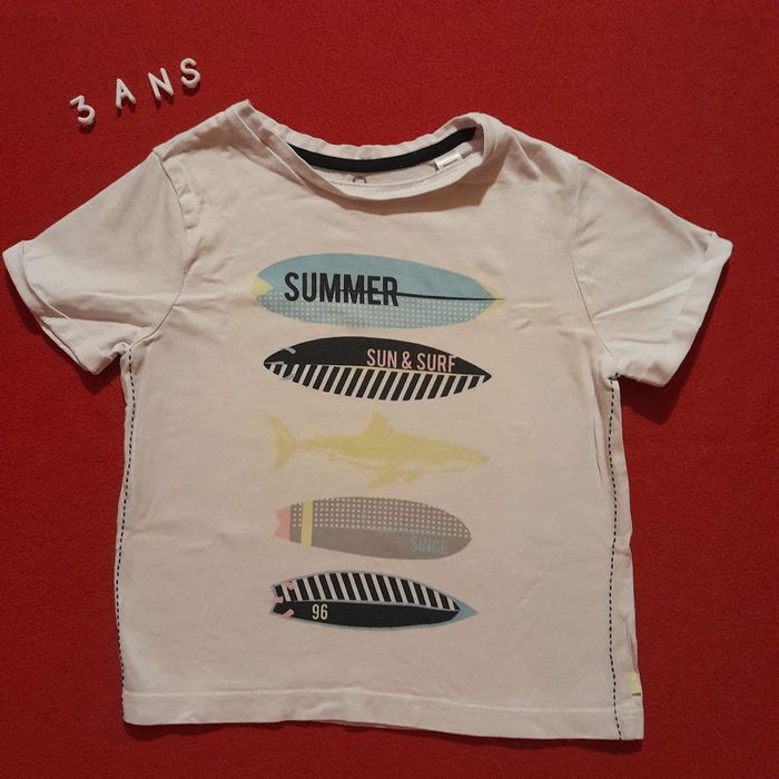T-shirt garçon en 3 ans Okaïdi en très bon état N'hésitez pas à faire des lots pour profiter des réductions jusqu'à 25 % ou à me contacter si besoin🙂🙂 ▶️ Pour vous aider dans votre recherche n'hésitez pas à utiliser les tags suivants: #sabine26072015garçon3ans