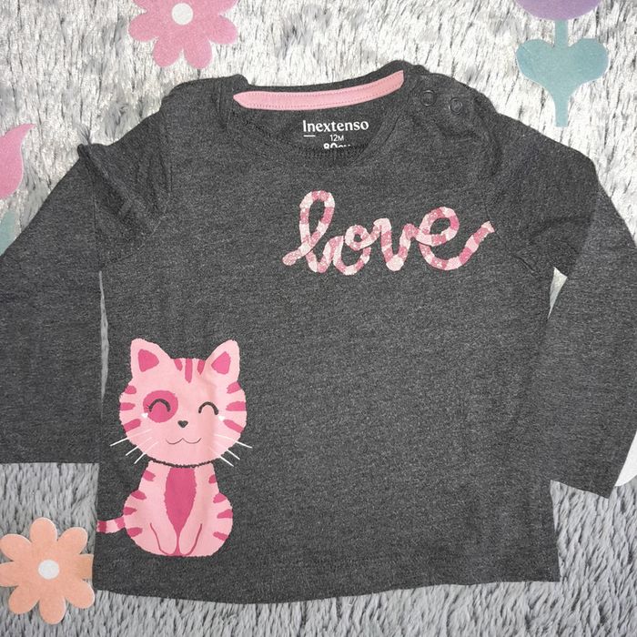T-shirt manches longues en 12 mois pratiquement neuf qui s'ouvre avec deux boutons de pression au niveau du cou #sabine26072015fille12mois