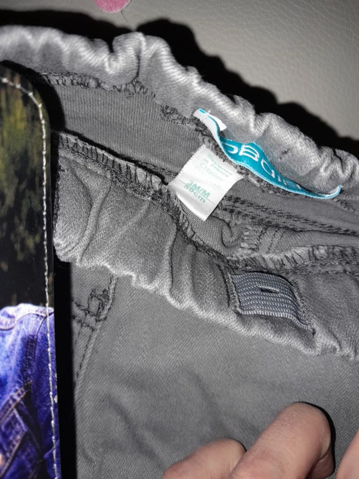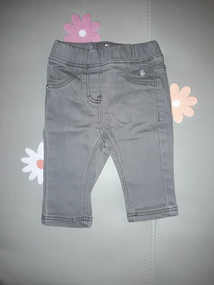 Jeans gris en 3 mois qui se règle avec élastique au niveau de la taille à l'intérieur #sabine26072015fille3mois