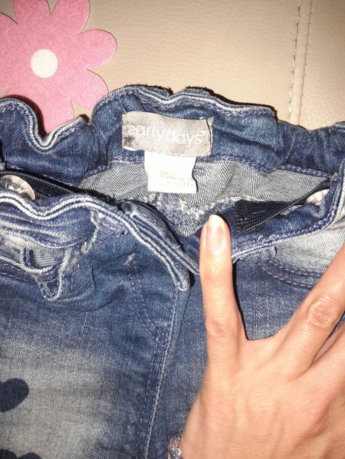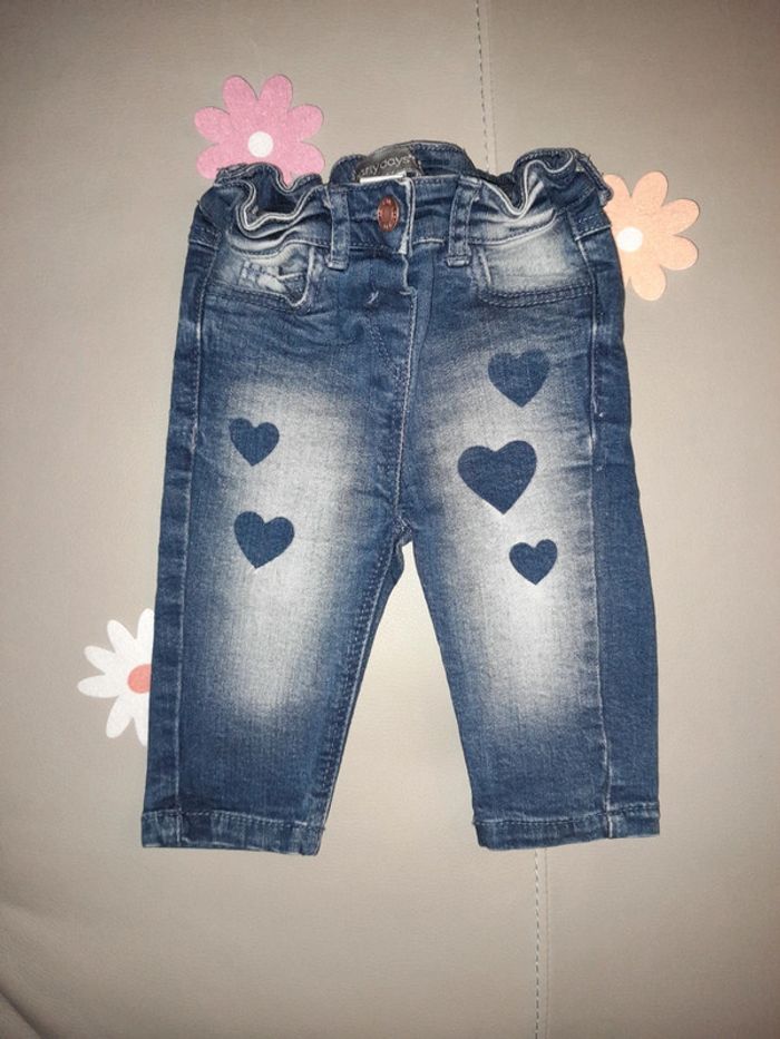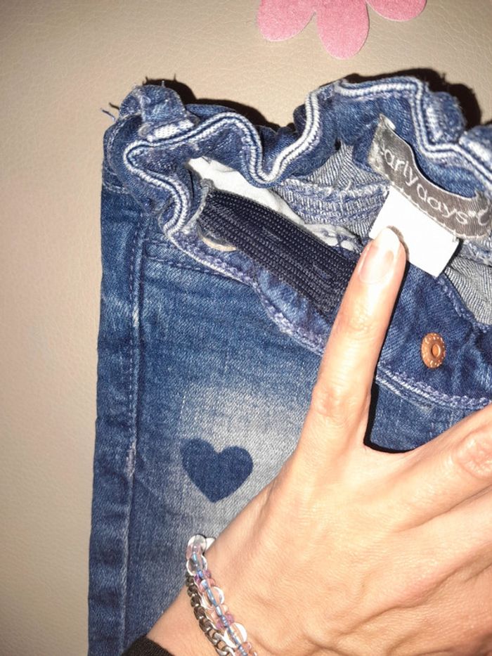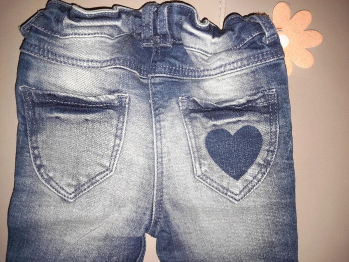 Jeans en 3, 6 mois avec bouton-pression sur le devant et élastique intégré pour la taille avec jolie petite imprimé en cœur sur le devant ainsi que sur une poche derrière #sabine26072015fille6mois