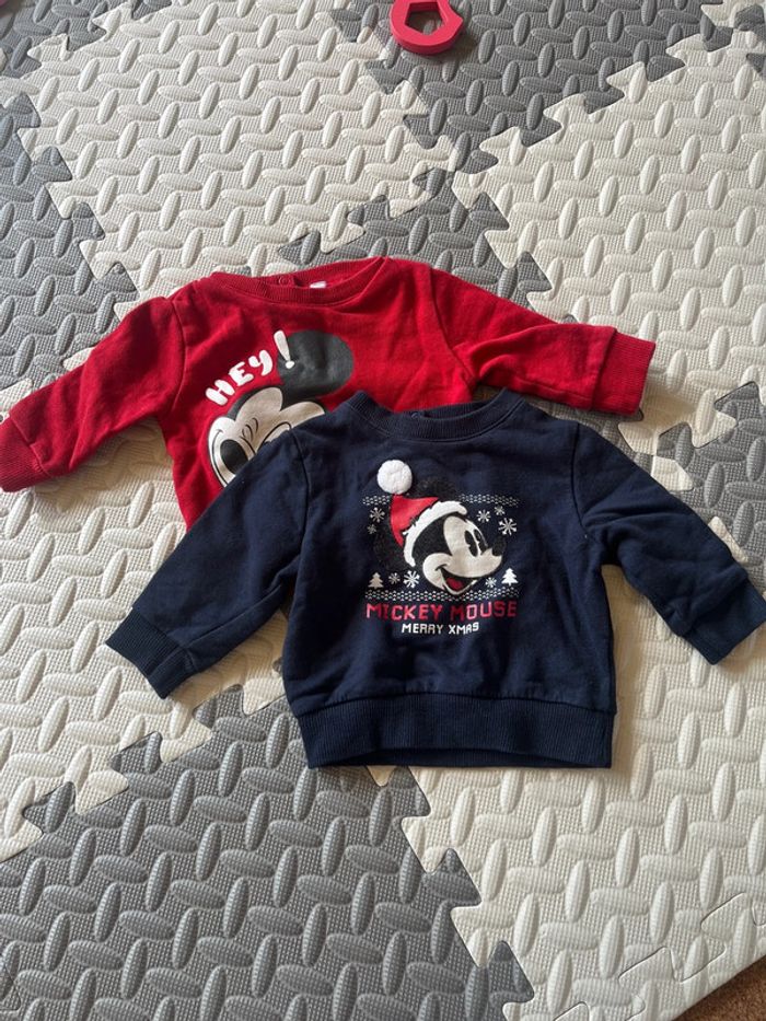Lot de 2 pull Mickey Marine et rouge taille 3 mois Très bon état