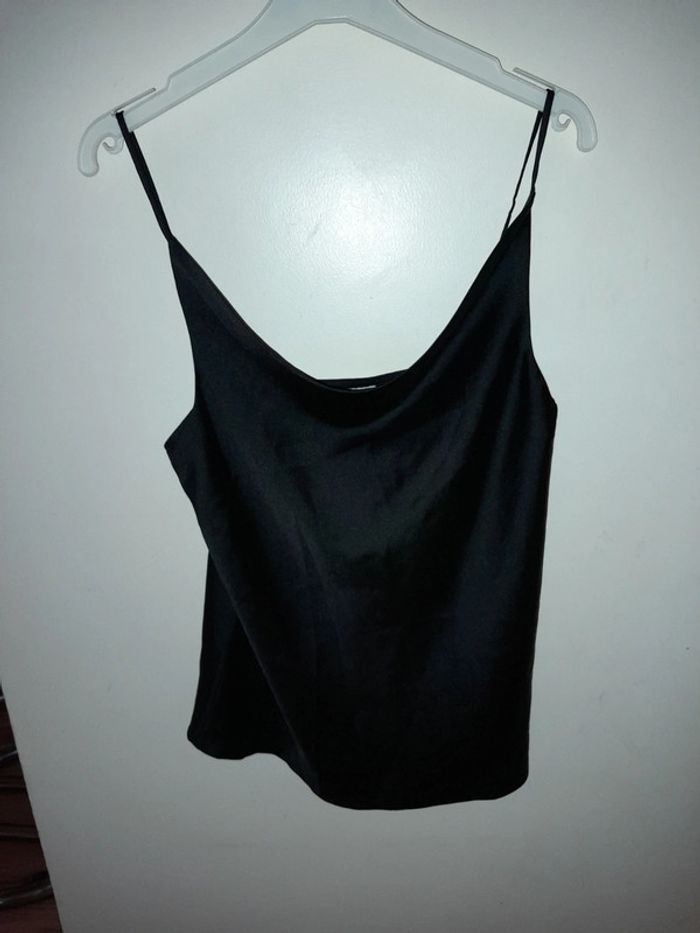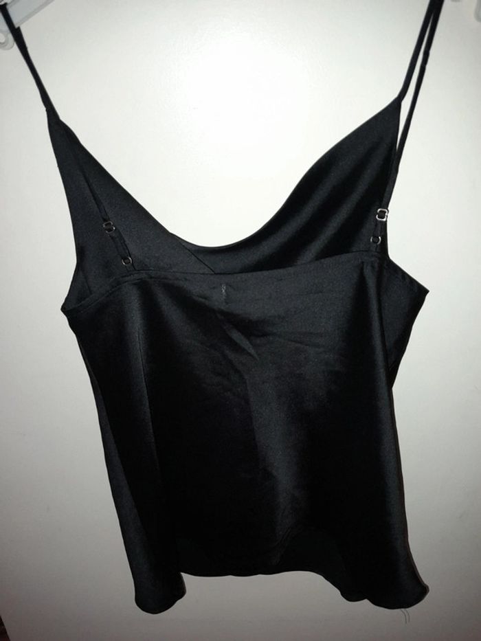 Débardeur en satin noir doublé au niveau du décolleté col bénitier, il se règle au niveau des bretelles en taille S, #sabine26072015hautfemme 💰N'hésitez pas à faire des lots pour profiter des réductions jusqu'à 25 % ou à me contacter si besoin🙂🙂 vous pouvez vous aider des liens qu'il y a sur ma description de profil☺️