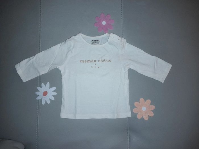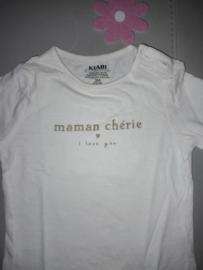 T-shirt manches longues en 3 mois avec petit bouton au niveau du cou et jolie inscription sur le devant #sabine26072015fille3mois