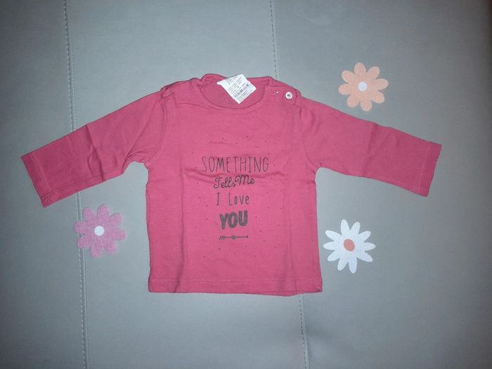 T-shirt manches longues en 3 mois avec deux petits boutons au niveau du cou #sabine26072015fille3mois