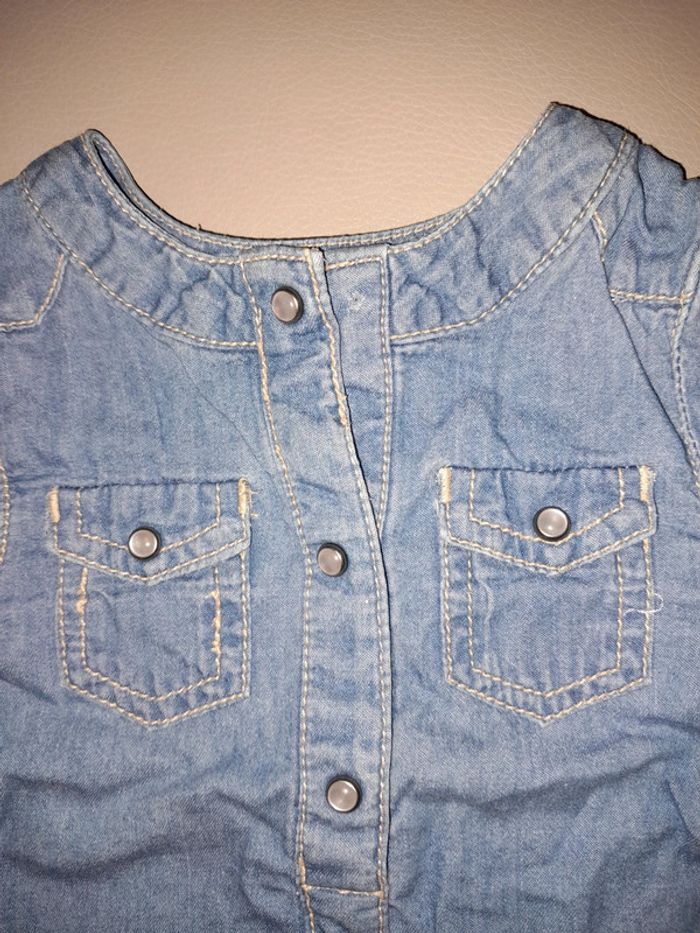Chemise en jeans longue en 3 mois comme neuve juste le premier bouton pression enlever au niveau du col comme sur la photo #sabine26072015fille3mois