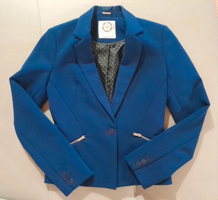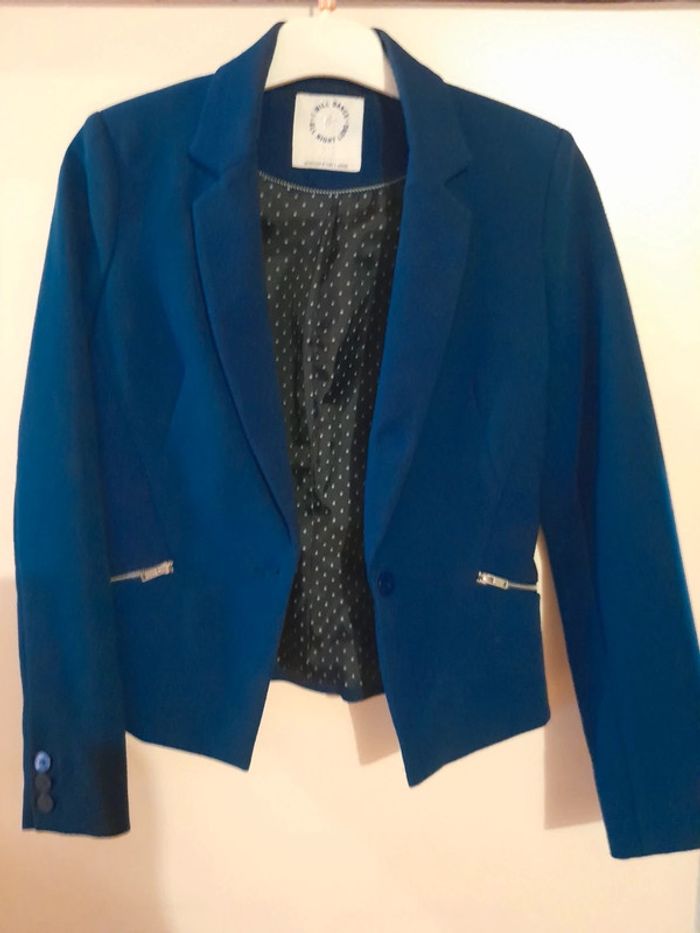 Veste tailleur bleu électrique en taille XS en très bon état porter une ou deux fois avec deux poches sur le devant avec fermeture et une poche à l'intérieur ,se ferme avec un bouton sur le devant Des chaussures de la même couleur sont aussi dans mon dressing #sabine26072015vesteetgilet 💰N'hésitez pas à faire des lots pour profiter des réductions jusqu'à 25 % ou à me contacter si besoin🙂🙂 vous pouvez vous aider des liens qu'il y a sur ma description de profil☺️