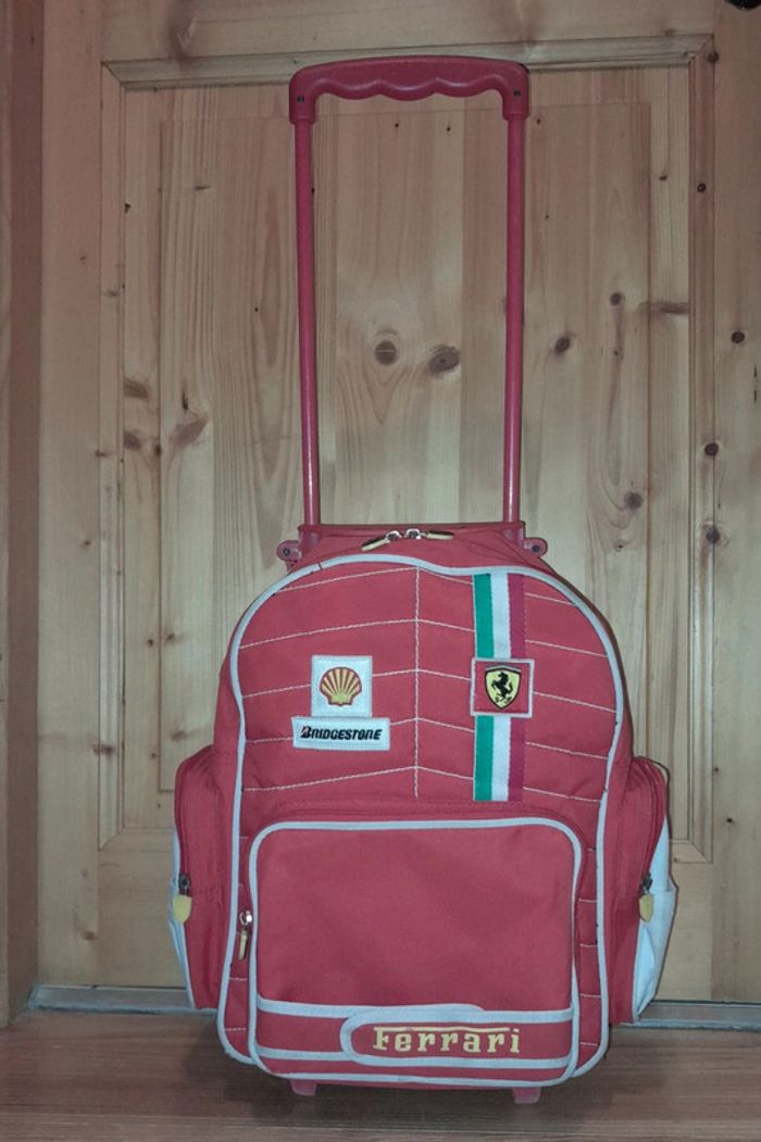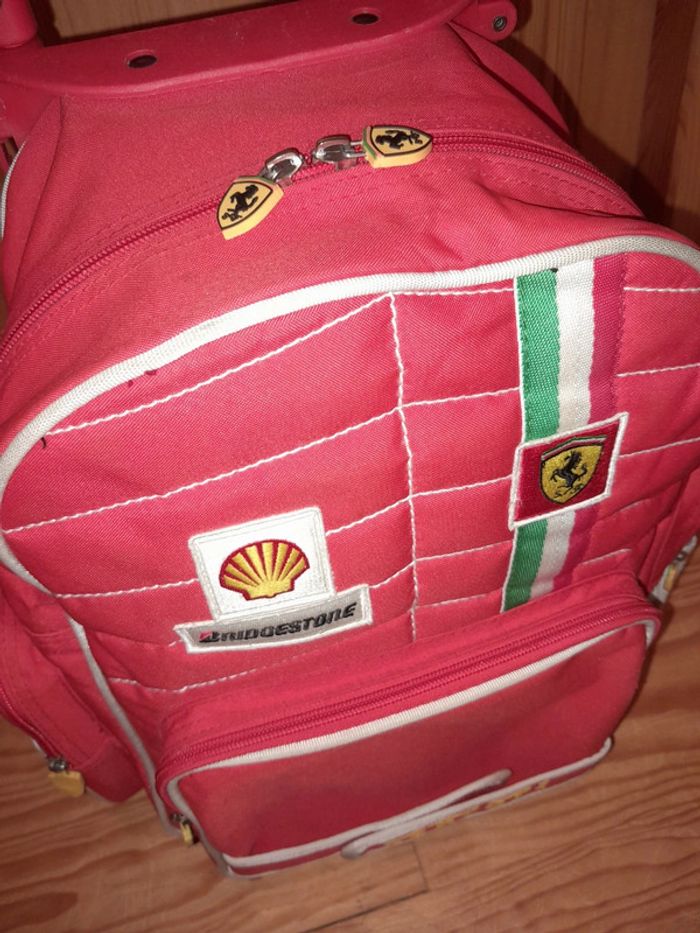 Cartable Ferrari à roulettes, a été utilisé assez souvent mais reste plutôt en bon état à part au niveau des deux barres dans le dos et des poches blanches sur les côtés ou il reste des tâches #sabine26072015sacetpochette #ferrari 💰N'hésitez pas à faire des lots pour profiter des réductions jusqu'à 25 % ou à me contacter si besoin🙂🙂 vous pouvez vous aider des liens qu'il y a sur ma description de profil☺️