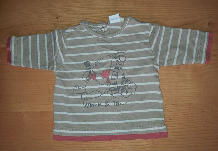 T-shirt manches longues garçon bébé un mois de marques Disney avec Winnie et Tigrou sur le devant, s'ouvre entièrement par bouton pression dans le dos #sabine26072015garçon1mois