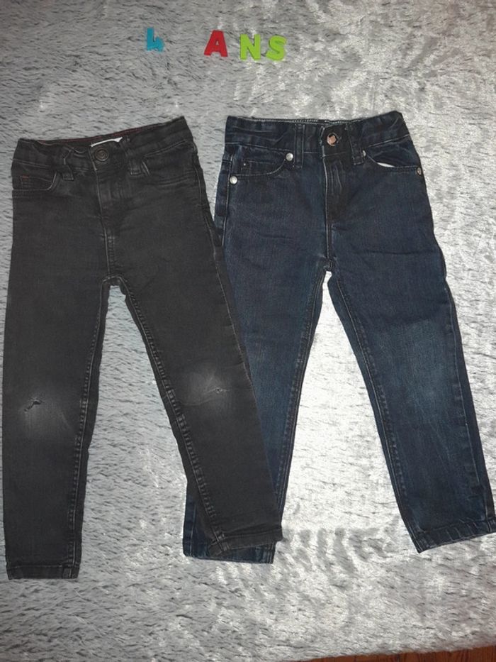 Lot de 2 jeans garçon en 4 ans le noir et usé au niveau des genoux, différentes marques, possibilité de régler au niveau de la taille #sabine26072015garçon4ans