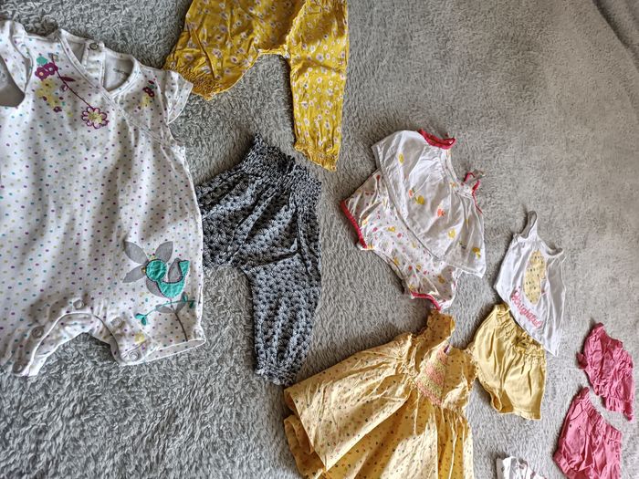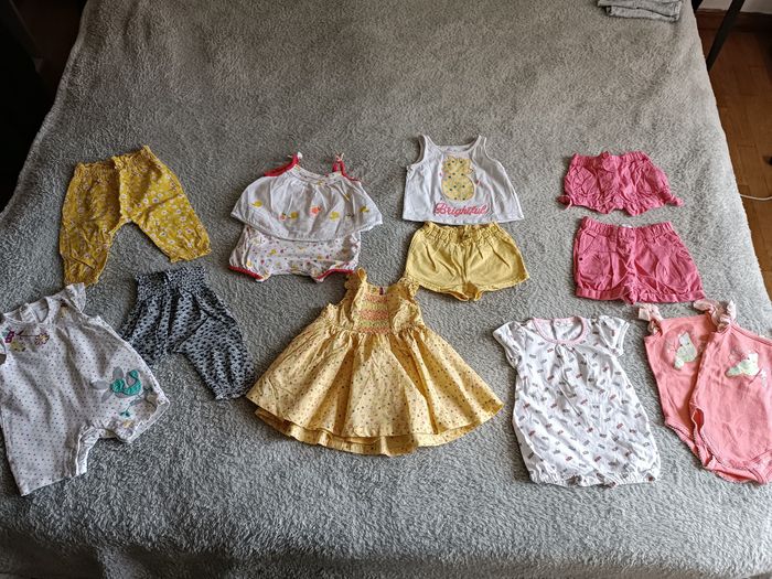 Lot de 12 articles 3 mois en super état - 1 robe orchestra - 2 bodies bretelles - 3 barboteuse dont deux orchestra -3 shorts in extenso, kitchoun - 1 débardeur in extenso - 2 pantalon léger Kiabi Pensez à faire des lots les remises sont activés. Dressing moderne et à petit prix.