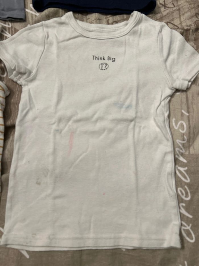 En 4-5 ans (taillent petit) Sauf le bleu en 2-3 ans Le blanc a des taches de feutres