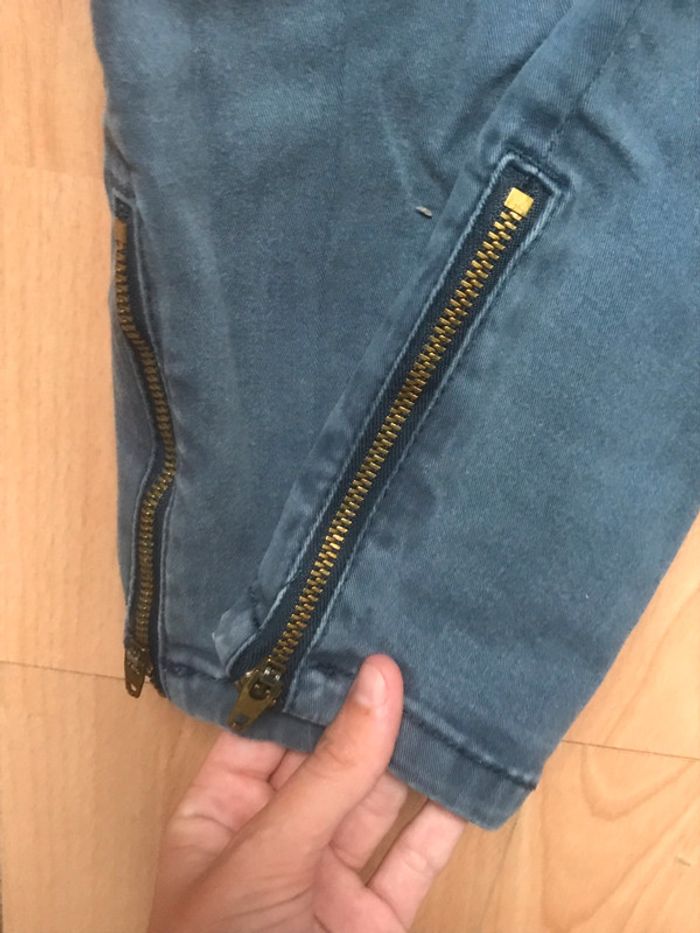 Jean slim bleu taille 36, avec fermeture éclair en bas du jean,porter quelques fois, en bon état.