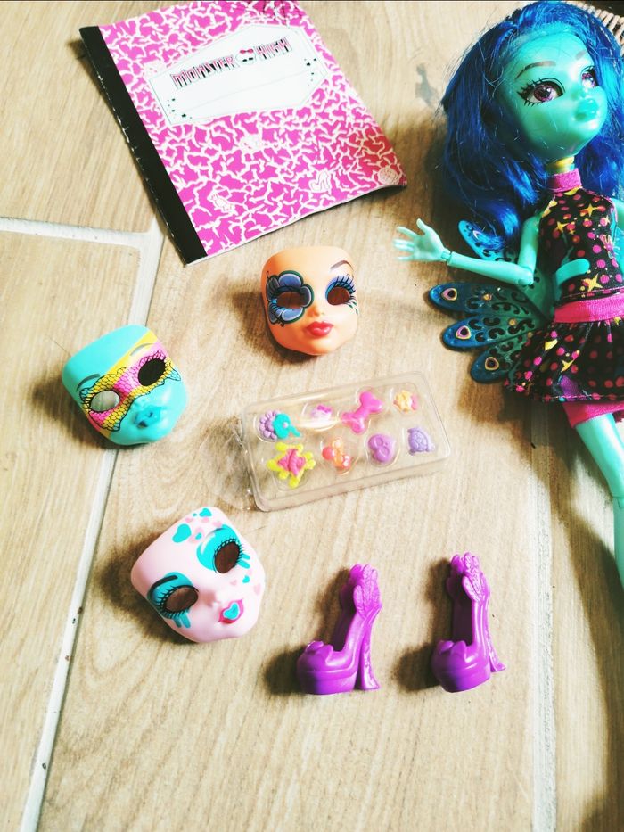 🦇Poupée Monster high Spooky sweet et ses accessoires marque Mattel MH124 🎀Avec son journal et accessoires 🎀Les cheveux s'enlèvent pour laisser apparaître son cerveau et en appuyant sur le crâne les yeux changent ❇️N'hésitez pas à créer un lot pour économiser sur les frais de port❇️