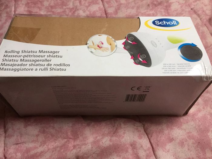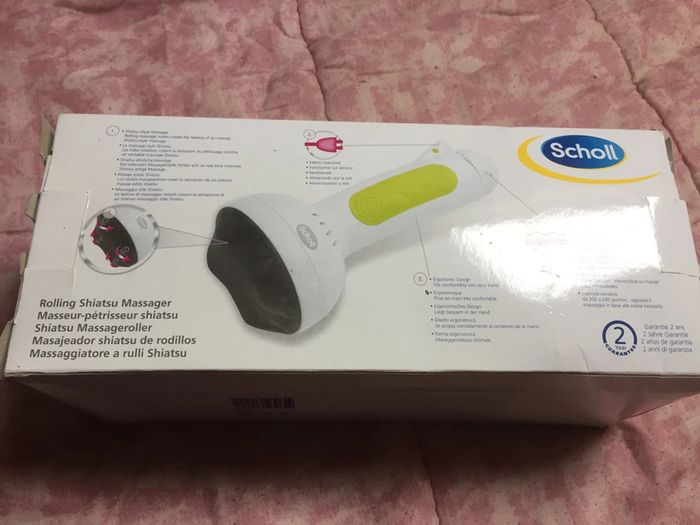Masseur pétrisseur Scholl utilisé 1 fois. Fonctionne parfaitement. Boîte abîmée mais pas l’appareil.
