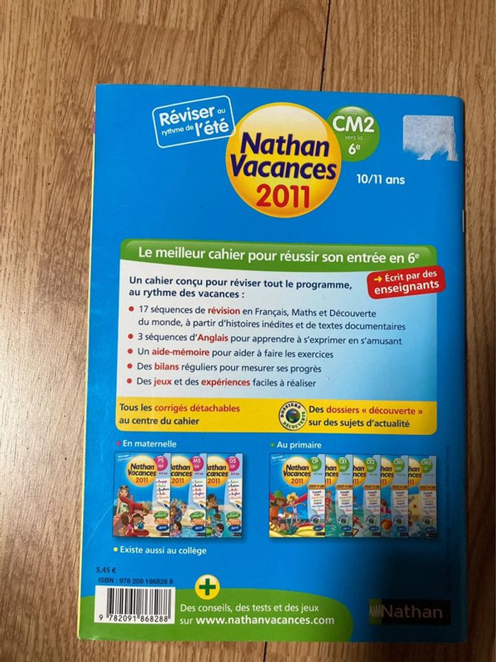 Cahier de vacances CM2 vers la 6 eme neuf non utilisé + livre de grammaire 6 eme qui a quelques pages d’écrites.