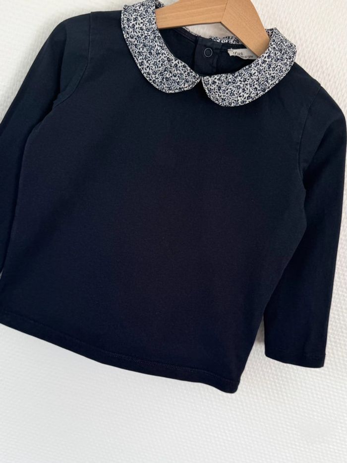 Eden & Victor - Teeshirt manches longues à collerette bleu marine 3 ans - photo numéro 2