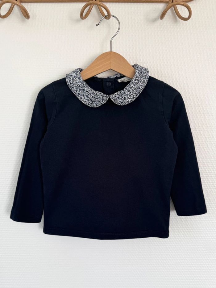 Eden & Victor - Teeshirt manches longues à collerette bleu marine 3 ans - photo numéro 1