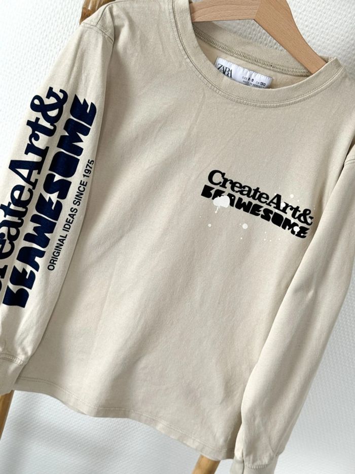 Teeshirt, tee-shirt manches longues beige Zara Taille 8/9 ans - photo numéro 2