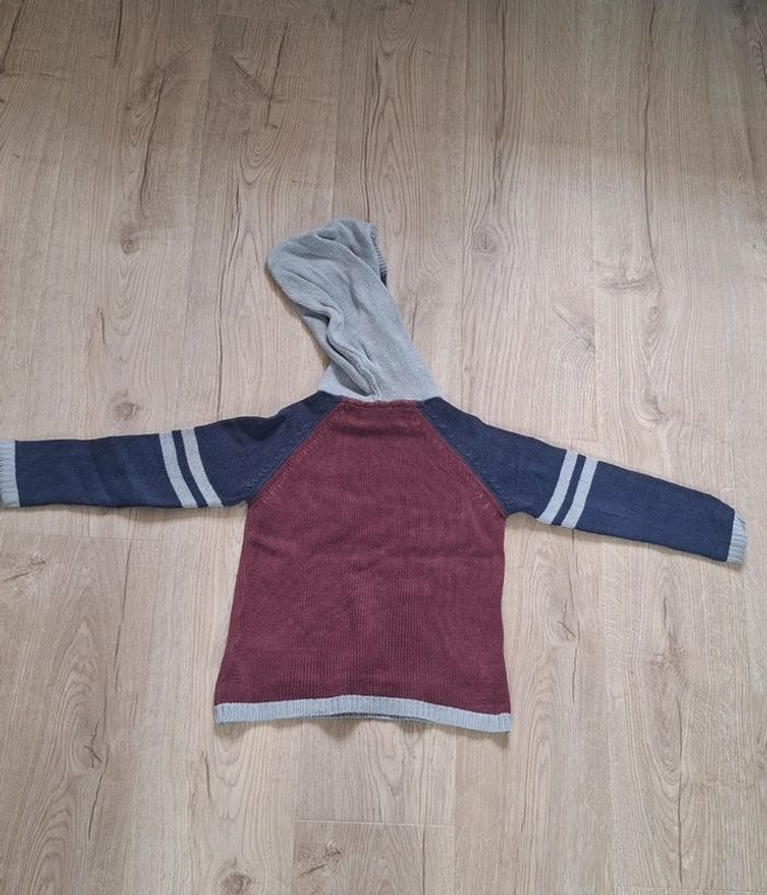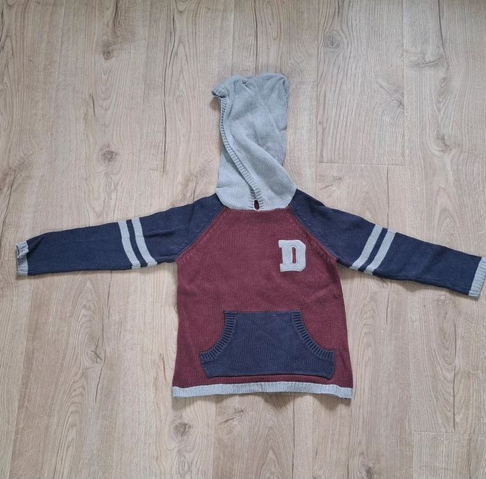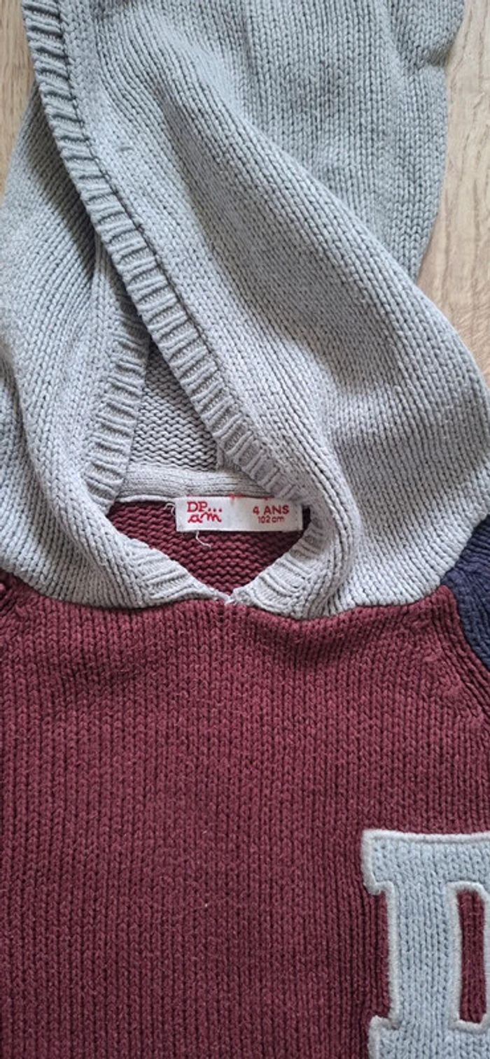 #loluxiagarcon4ans Pull à capuche, poche ventrale communicante, style américain. Bleu marine, gris et bordeau. Du Pareil Au Même.