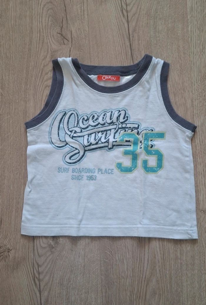 - 1 débardeur NEUF, blanc et bleu marine, 94cm Okaou, théme surf