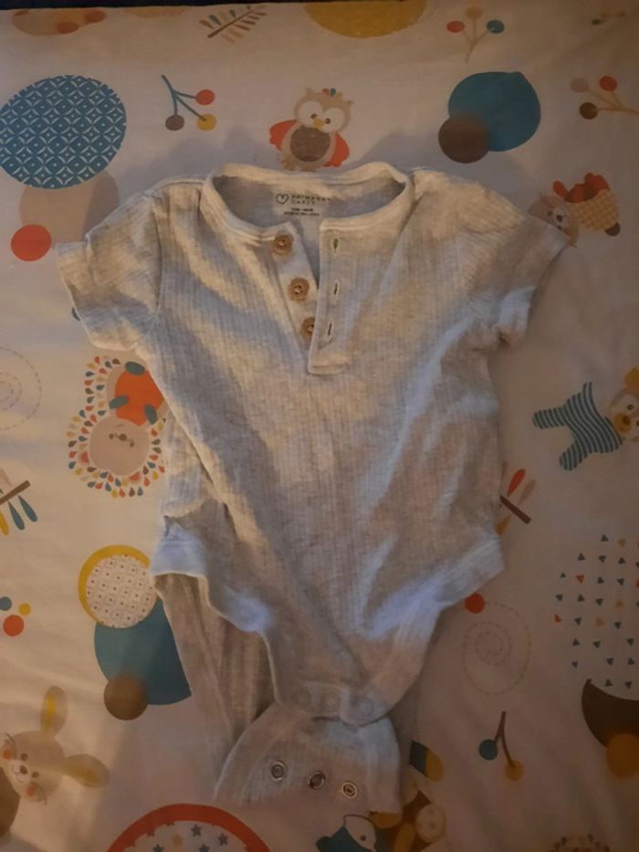 》Body à manches courtes evolutif effet polo avec ouverture à boutons sur l'avant de couleur gris clair En très bon état. Très peu porté. Proche du neuf. Taille 3/6 mois