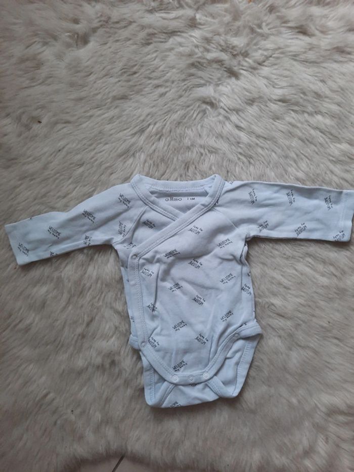Bodie à manches longues en très bon état. "Welcome my baby" Porté quelques fois. Taille 1 mois. Ouverture sur le côté