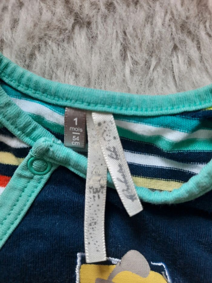 Pyjama léger en très bon état. Porté quelques fois. Taille 1 mois. Ouverture sur le côté.