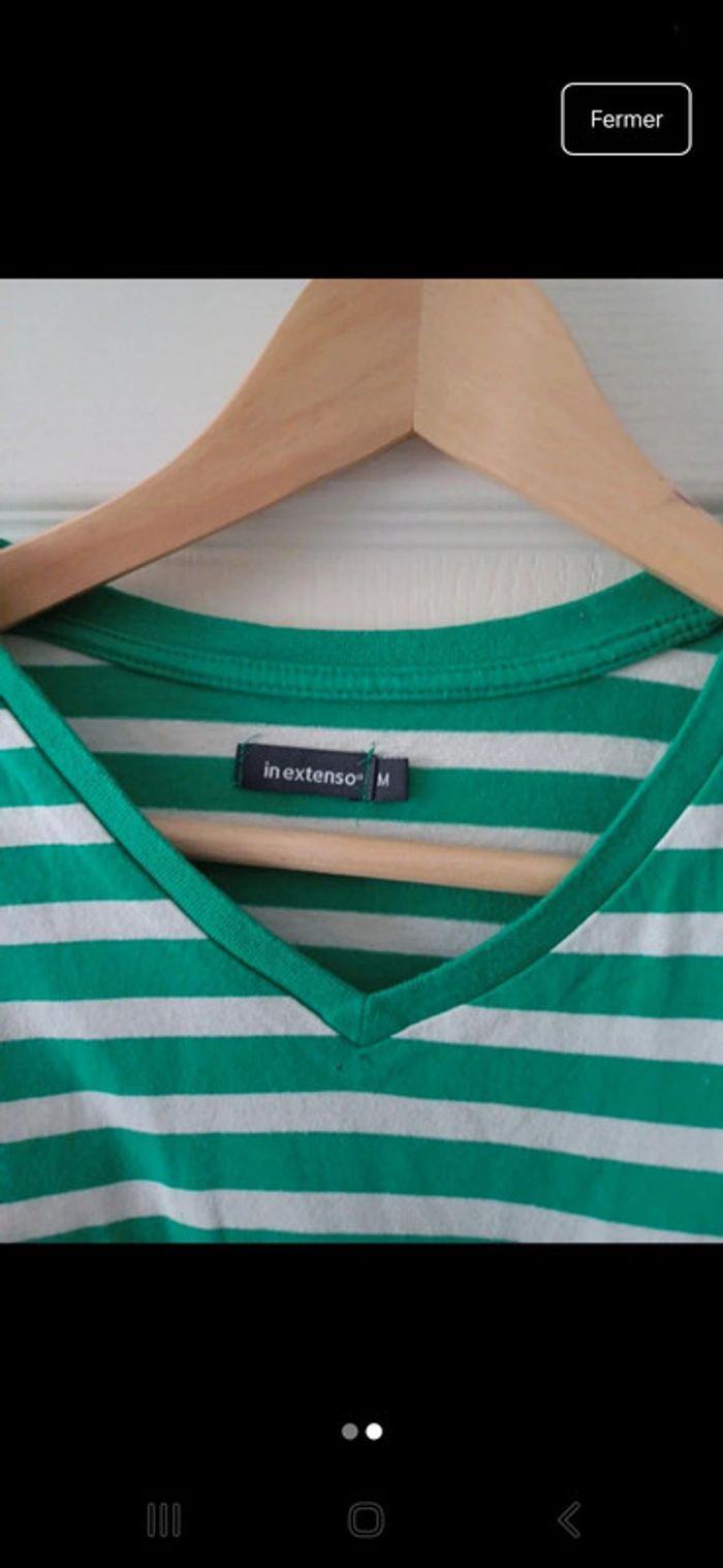 T-shirt rayé vert et blanc Taille 38 - photo numéro 2