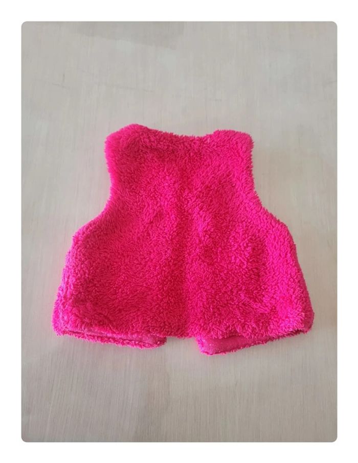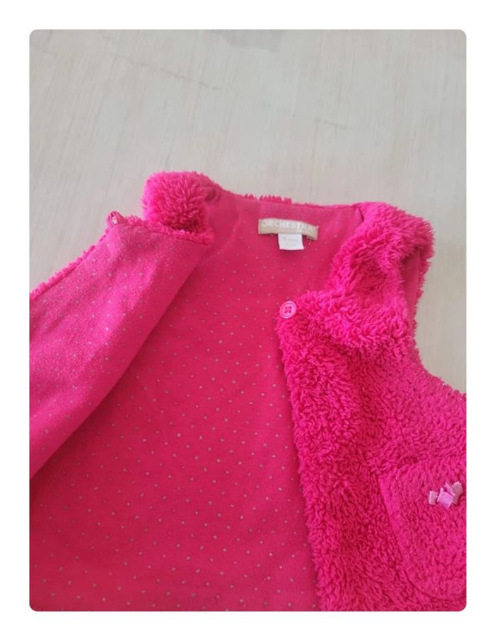 Veste sans manches orchestra. Rose fushia effet "pilou-pilou". Taille 9 mois. Très bon état #33coco_fille9mois